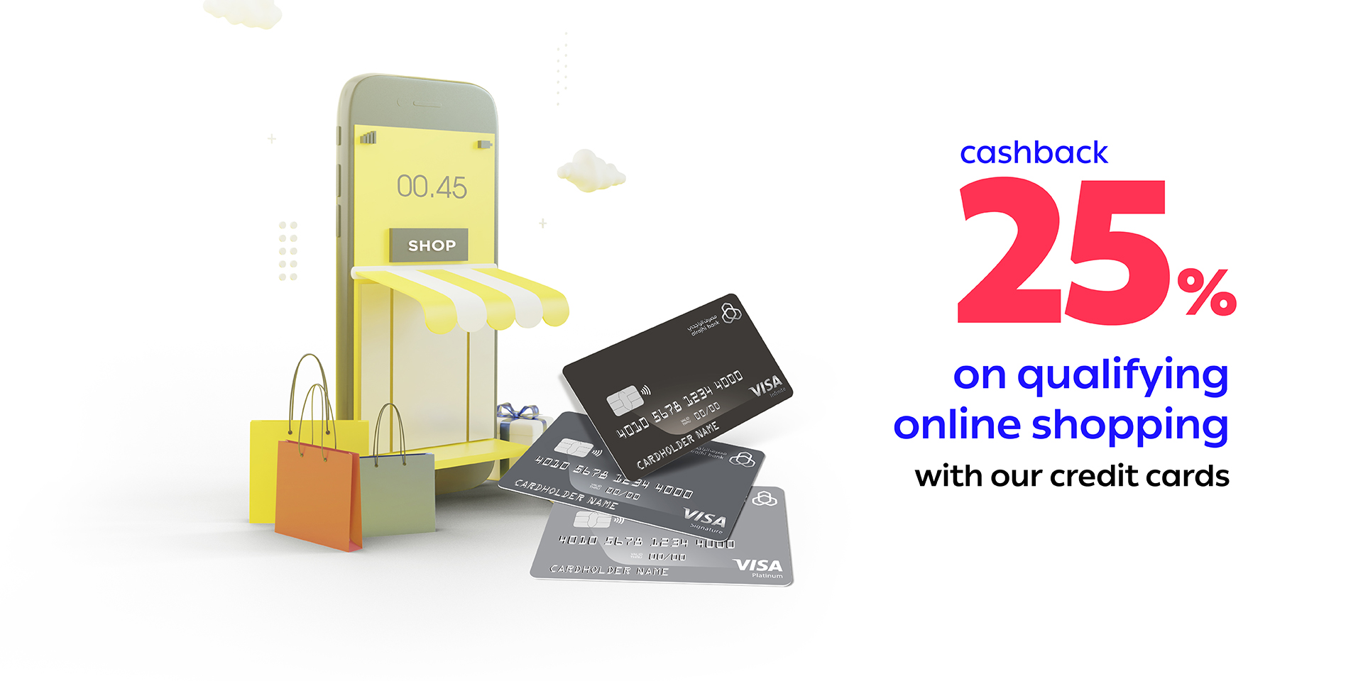 Eligible cardholders will receive a 25% cashback on qualifying online shopping purchases up to SAR 100.