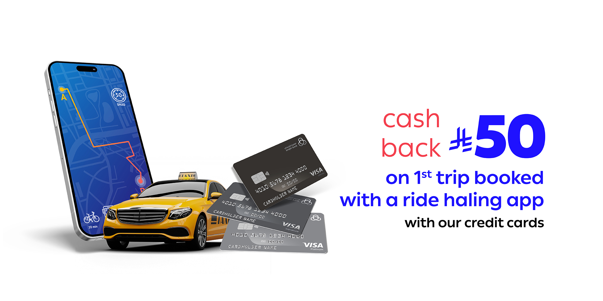 Enjoy up to SAR 50 cashback on 1st ride hailing app trip with your credit card