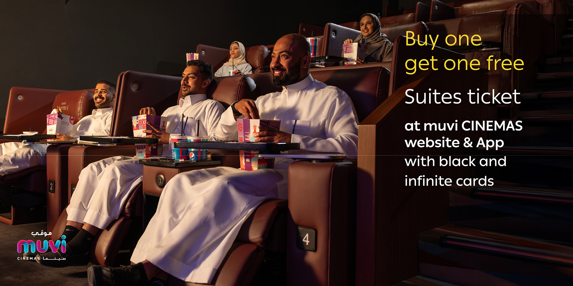 Buy Suites tickets and get the second one for free at Muvi Cinemas with alrajhi bank cards!