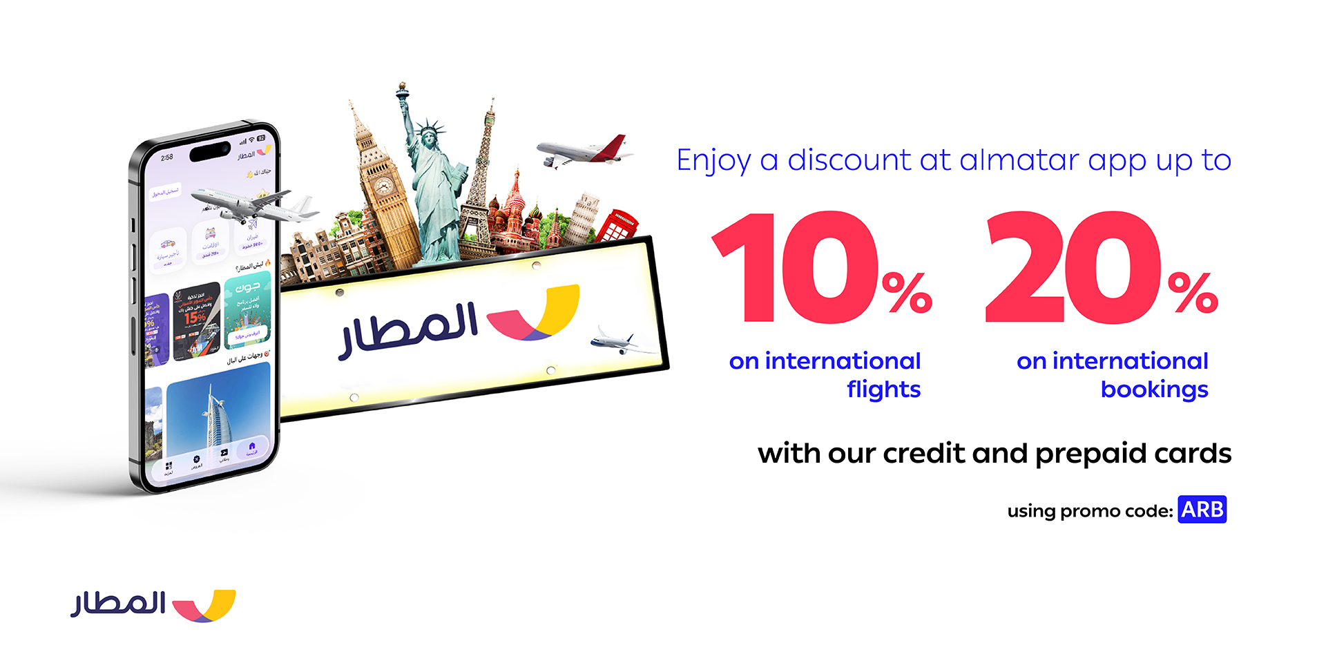Enjoy exclusive discount of up to 20% on international hotel bookings & up to 10% discount on international flights at almatar.